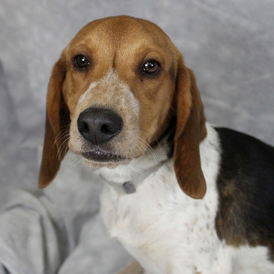 Eight-month-old Hunter is a happy-go-lucky Basset Hound mix who loves to play. He is curious, enthusiastic and delighted to be with people. Just one look in those dark brown eyes, and you will see how happy he is to be with you. Hunter is still in his puppy stage, so he likes to chew. Give him a tug toy or something fun to chew on, and he will be very happy. Hunter seems to like other dogs in the puppy room and would love to meet a dog you might have at home to see if the two can get along. Hunter is still getting used to the concept of a leash. He will get interested in the outside world and forget a moment about you, but bend down, call his name and he’ll come running. Hunter is neutered, micro-chipped and up-to-date on his vaccinations. Come meet him today at the Kentucky Humane Society’s Main Campus, 241 Steedly Drive. For more on Hunter or any of our adoptable pets, please call 502-366-3355 or visit kyhumane.org.