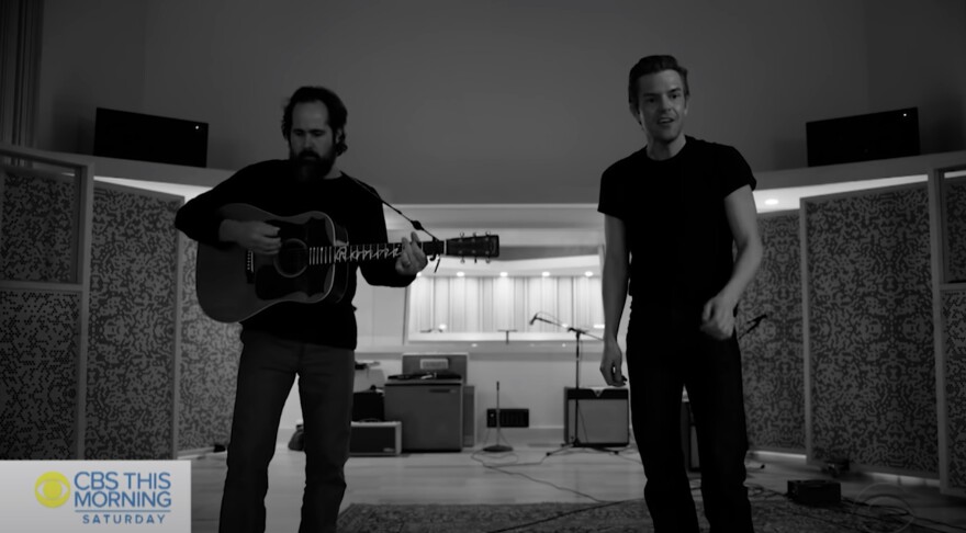 Frontman Brandon Flowers and guitarist Ronnie Vannucci Jr. performed acoustically from the band's Utah studio and debuted another track from their now-delayed album Imploding the Mirage. Check out "Blowback"...