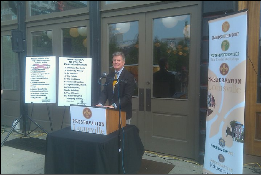 Executive Director Marianne Zickuhr says Whiskey Row has been an important achievement for the organization.“Knowing that we had both entities the preservation successes list and the endangered list that had entries from whiskey row it was obviously a controversial time," she says "but we’re standing here full of smiles and wonderful, wonderful happiness because of what a great deal has been reached between the developer and the city.”The endangered list had a large X marking out Whiskey Row, the former number one most endangered building; and the Whiskey Row Lofts are listed as the number one success.Zickuhr says she is extremely proud of the work between the city and developers to save the buildings.“I think Mayor Fischer made a great stand by coming forward and really pushing for creative, out of the box thinking in order to find a resolution to the issue here on whiskey row," Zickuhr says "and seeing how well he protected our civic assets, I feel really proud to be a Louisvillian standing here today.”Preservation Louisville implemented the annual top ten successes list in 2008 as a way to celebrate historical preservation projects. Zickuhr says the list has been a major attention getter in the community and she hopes it continues to motivate people to take action in their own neighborhoods.