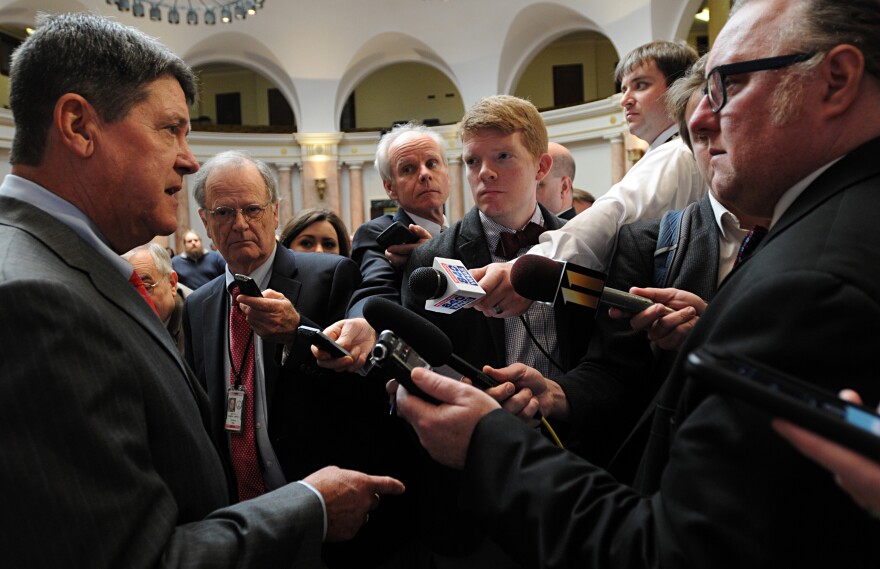 (Photo: Democratic House Speaker Greg Stumbo addresses reporters. Via Legislative Research Commission)