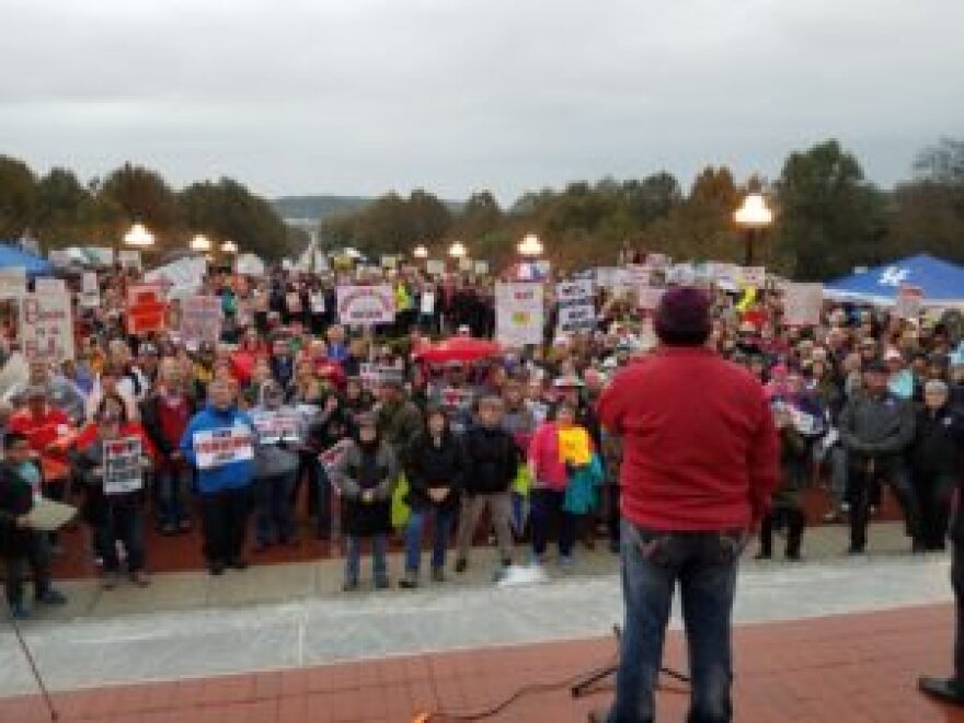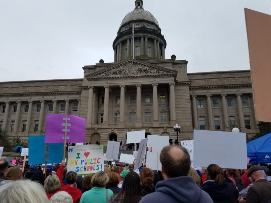 Hundreds of state employees and retirees rallied on the steps of the State Capitol Wednesday night, protesting Gov. Matt Bevin’sproposed changes to the state’s troubled pension plans.