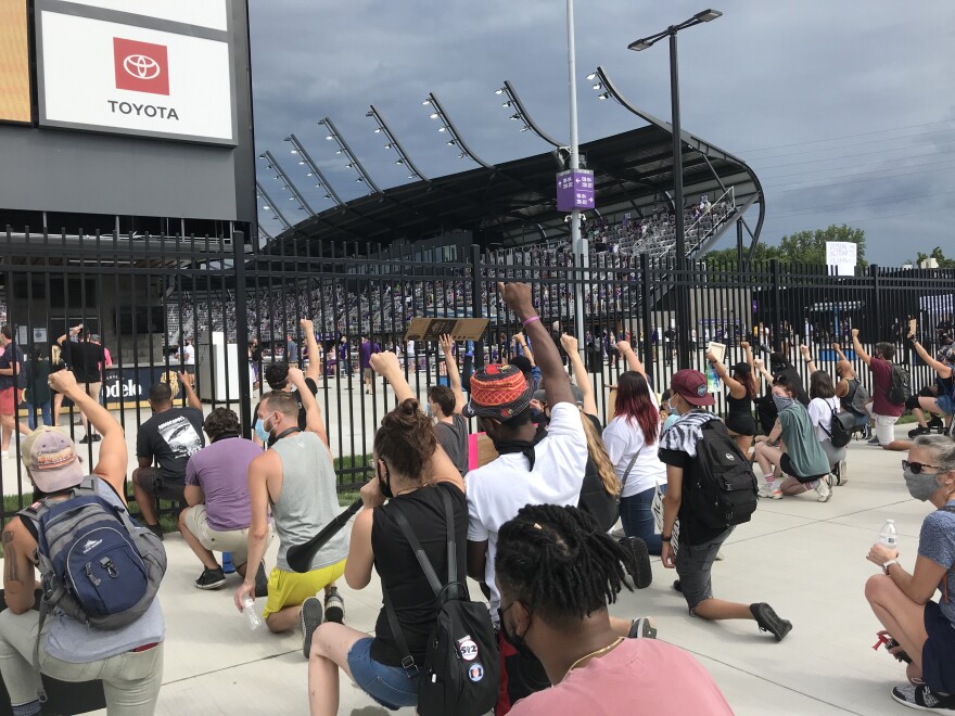 It was a night of firsts: the opening of the new Lynn Family Stadium, the first team-based sports with fans in Kentucky since the pandemic began, the first game of the USL Championship season and the first time Louisville racial justice protesters have disrupted a live sports event with fans.