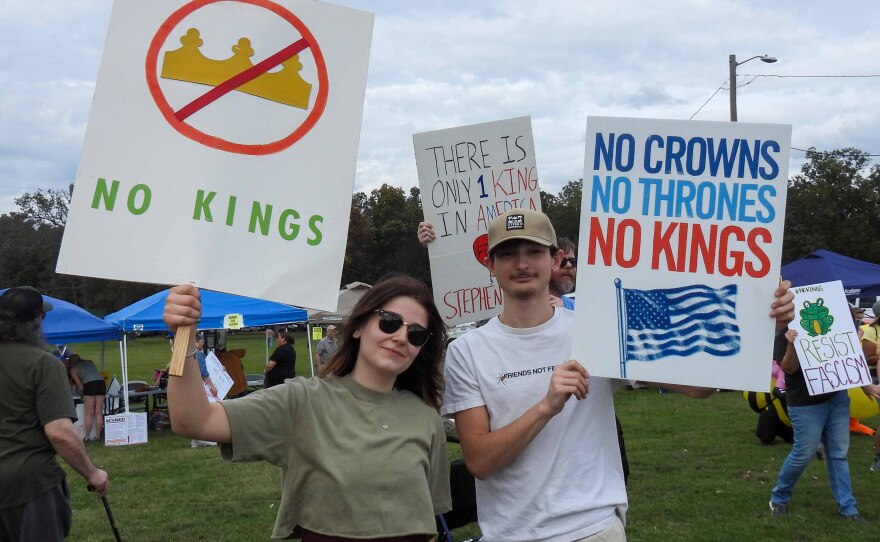 Protestors in Hopkinsville, KY demonstrated on Oct. 18, 2025 as part of the "No Kings" protests taking place across the country.