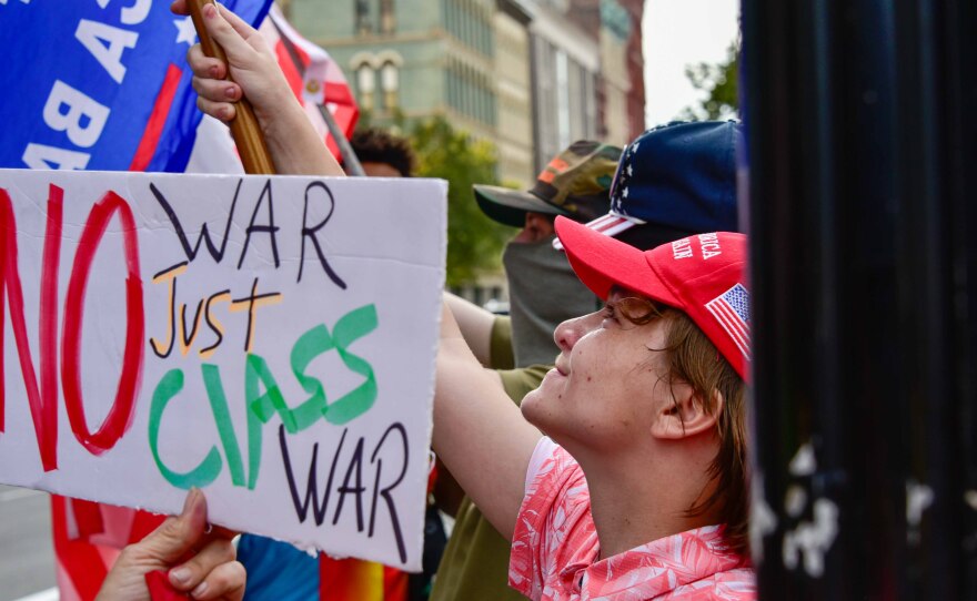 Demonstrators described a variety of issues, not only with what they see as an overreach of presidential power, but also GOP-backed policies and rhetoric around health care, food stamps, reproductive rights, immigration, housing insecurity and LGBTQ+ rights.